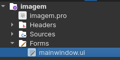 Para começarmos, ao criar o seu projeto vá até a pasta “Forms” a abra o arquivo .ui, com isso a ferramenta design irá abrir.