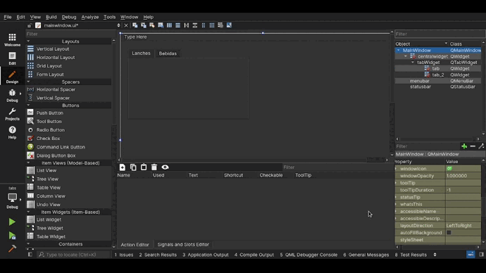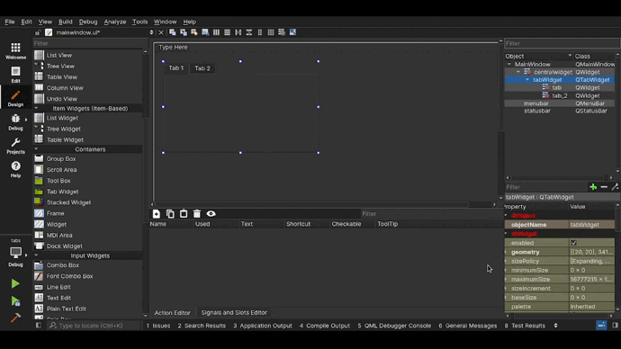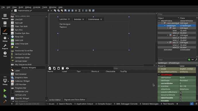 Após isso, vamos ativar essas duas propriedades da QTabWidget: