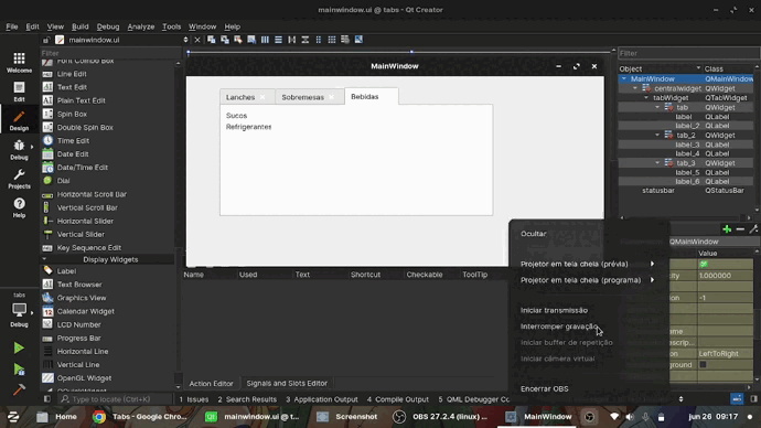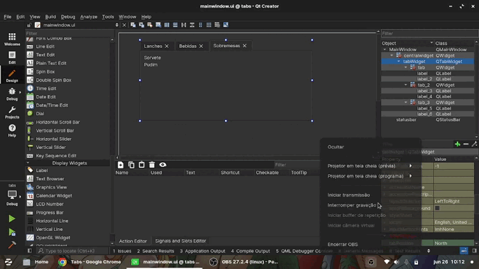 Nesse tutorial iremos aprender a fazer uma tab widget (janela com abas), ela permite que vários documentos ou painéis sejam contidos em uma única janela.