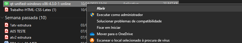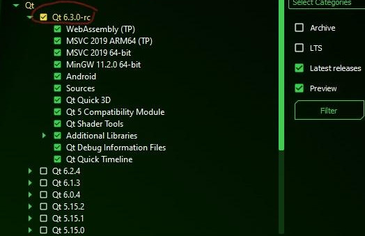 Logo depois, clique em Qt e selecione a primeira opção de versão: