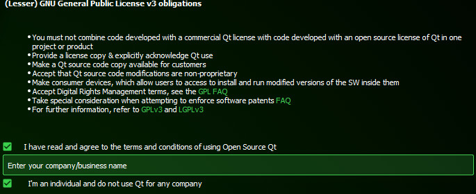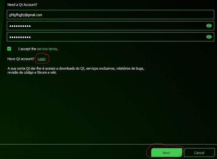 Após informar o e-mail e senha cadastrado, é necessário concordar com os Termos e Condições de uso. Selecione que é uma pessoa física e não usa o Qt para nenhuma empresa: