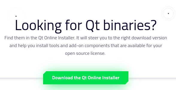 Entrará em outra página e deverá rolar a página até Looking for Qt binaries? (Procurando por binários Qt?) e clique em Download the Qt Online Installer (Baixe o Instalador de Qt online)